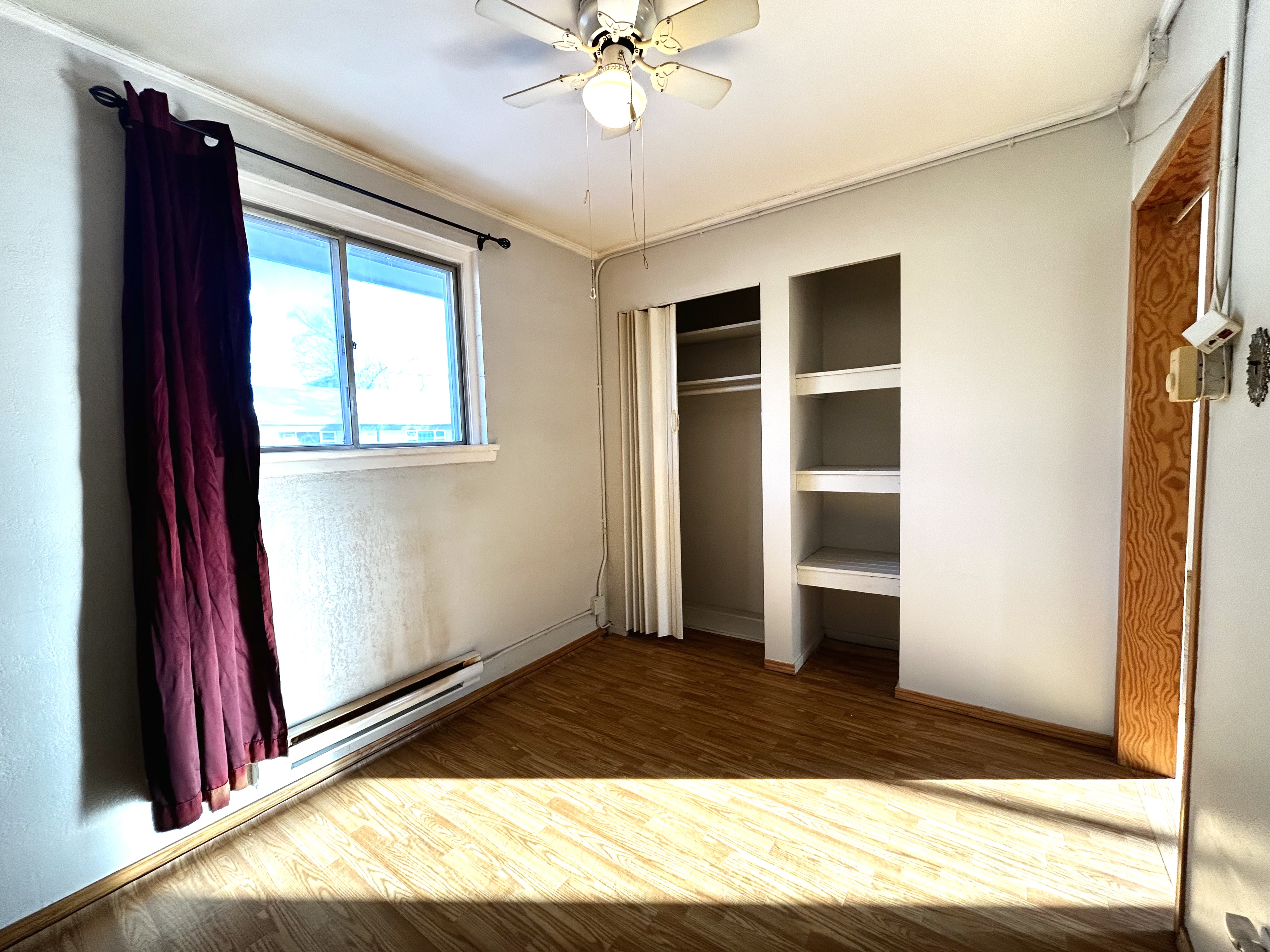 This apartment features 1 bedroom, 1 bathroom, and comes with a fridge and stove. There is access to free shared laundry. This is a 55+ building with a common area that is open to the tenants. To qualify for this property, applicants must be 55 years or older.